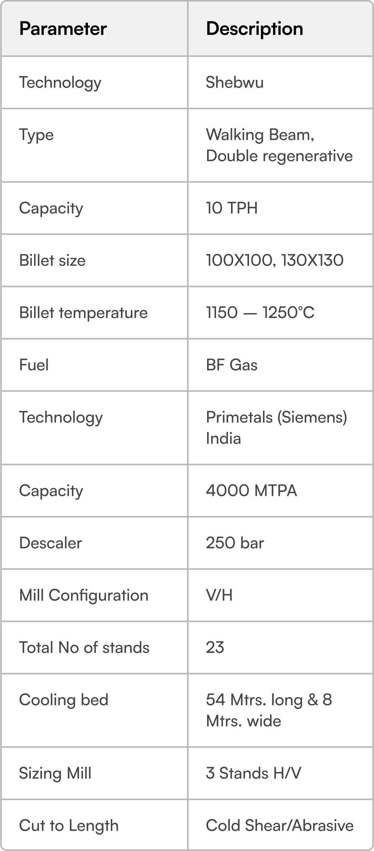Our Rolling mill has state of art technology supplied by M/s Primetals Technologies and is on 5 meter elevated platform with sufficient space for operation and maintenance.